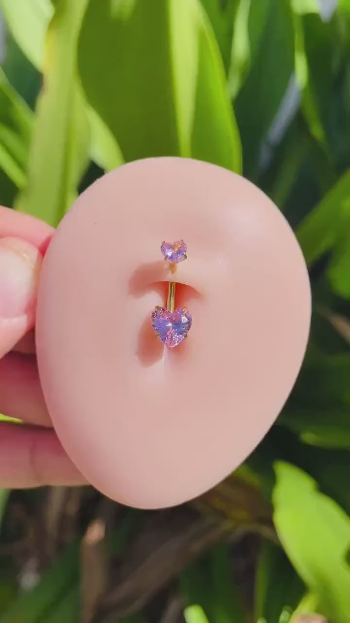 14k Gold Belly Button Ring Navel Ring Heart Shape Genuine Pink Sapphire Solid Gold Piercing Jewely Sale price$399.99 USD